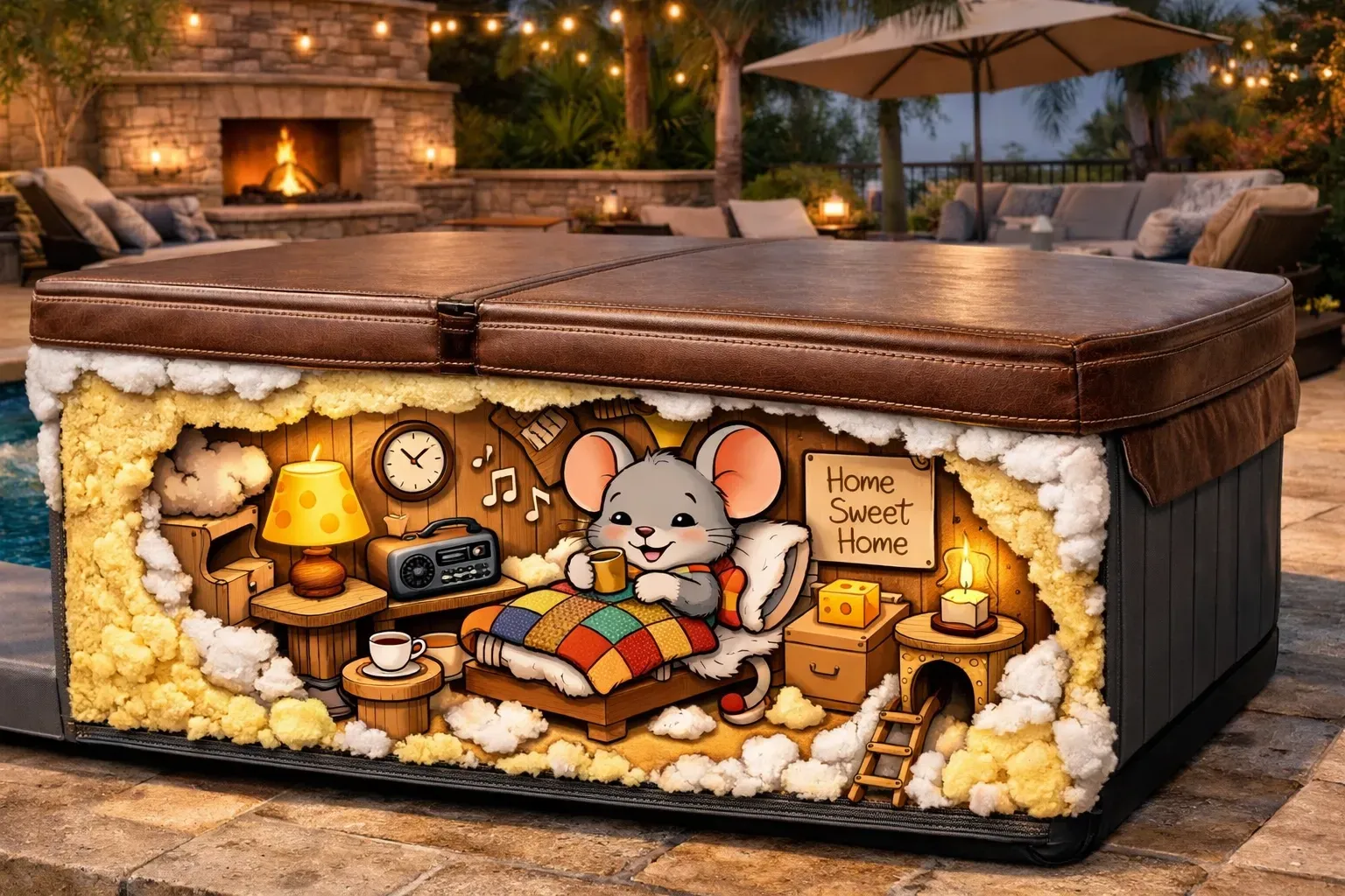 Hot tub covers are made of thick, dense foam covered in vinyl. It’s the perfect material for nesting. Rodents will chew through the underside of the cover to create a warm, protected "Insulation Suite." Once they are in, they have easy access to the water line for a drink and a cozy place to raise a litter.
